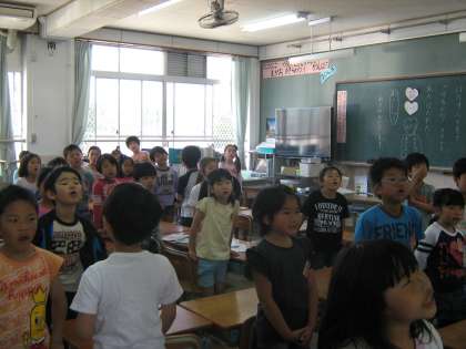 2年生から詩を音読する楽しさを味わってほしく,朝の会の時間に詩の音読を始めました。今月の詩は,「あいうえおはようもりのあさ」です。詩のリズムを楽しみながら,しっかりと口を開け,はっきりと大きな声で言えるように取り組んでいます。早速,覚えた児童は,詩を見ずに後ろを向いて音読しています。