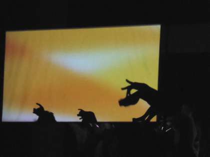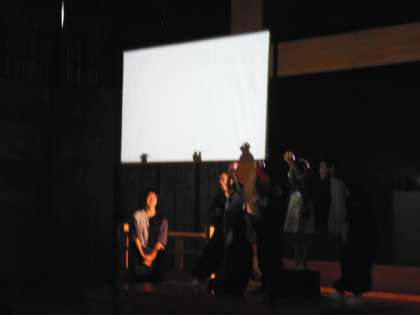 今年の演劇鑑賞は、かかし座による影絵劇「三枚のおふだ」です。はじめは、指を使っていろいろな動物を表現してくれました。ふくろうの作り方を全員が教えてもらい、代表の子どもたちが舞台にあがって体験しました。「三枚のおふだ」では、人と影絵のコラボでとても楽しいものでした。背景も影絵で遠近感があったり、動いたりと迫力もありました。