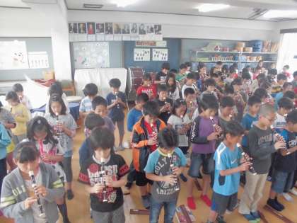 5年生は歌とリコーダーを披露します。曲目は「心から心へ」。
