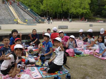 「宝ヶ池子どもの楽園」にバスに乗って行きました。天候にも恵まれ,大きな遊具で思いっきり楽しみました。お昼ごはんは,大好きなお家の方の愛情たっぷりのお弁当をおいしそうに食べていました!元気いっぱい帰ってきました。