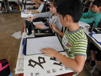 『名』はバランスを文字のバランスが難しくお手本をしっかりと見ないで書いていると,気がつくと半紙の半分を超えている子もいました…。