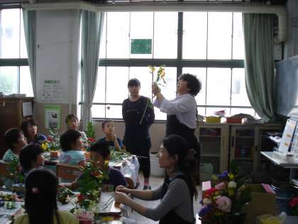 フラワーアレンジメントにチャレンジ!2年生