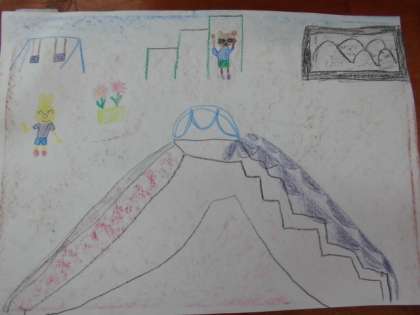 今回は,完成した紙芝居を見せ合いました。「釣りをしているのがおもしろいですね。」「空が暗くなるまで遊ぶのは,すごく仲良くなったんですね。」と上手に感想を伝えていました。
