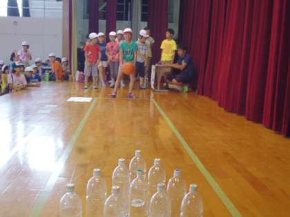 たてわり活動の中でも大きな行事の一つである「ピクニックスポーツ(ピクスポ)」が行われました。全校児童を40チームに分けて活動します。体育館や運動場、運動公園を会場としてさまざまなゲームが用意されています。学年に応じて参加種目を決め、チャレンジして得点を獲得します。高学年がリーダーとなって進めていきます。それぞれのゲームの場所では盛り上がりを見せています。