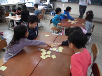 上の句を聞いただけでパッと札を取る子がたくさんいて,「がんばって覚えてきたんだな。」と感心しました。