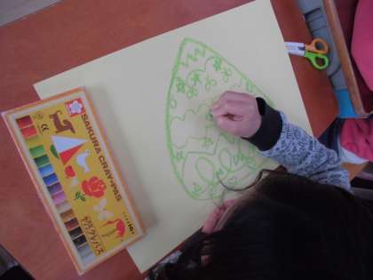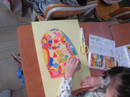 そして黙々と色を塗り,カラフルなたまごがいっぱいできました。
