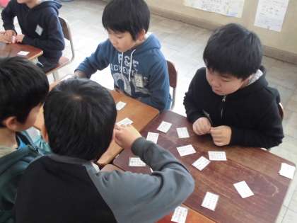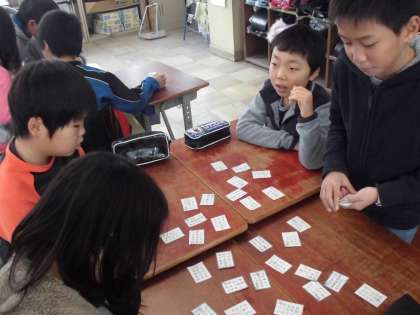 百人一首大会のために,練習しました。速い子は,上の句3文字くらいでとります。これまでの練習の成果が表れているようです。