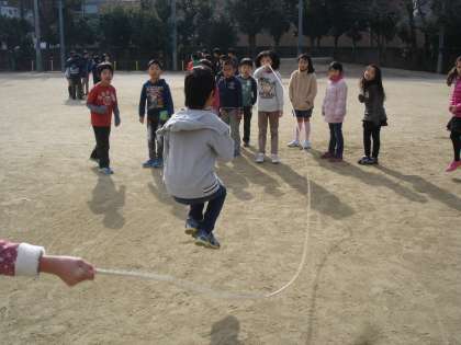 中間休みは,毎日大縄に挑戦!どの子もみんな楽しそうです。日に日に跳べるようになり,中間休みが待ち遠しい子どもたち。休み時間が終わったら,きちんと手洗いうがいもしている姿がありました。