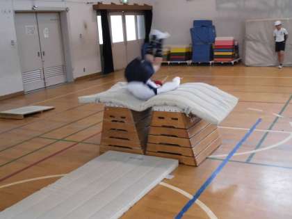 今まで出来なかった『台上前転』や『かかえこみ跳び』などに果敢にチャレンジしている素晴らしい姿が見られました。
