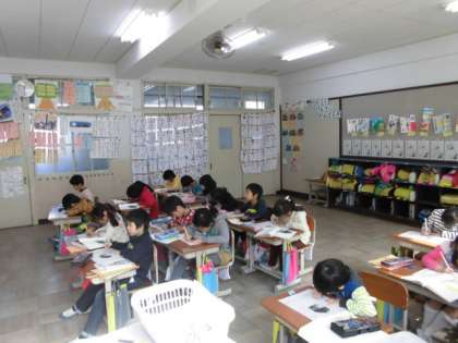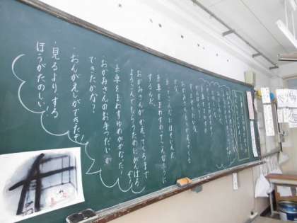 茶色いしっぽは,はえてないけれど,みんなで考える楽しさを知った1年生だぬきがたくさん教室にいました。
