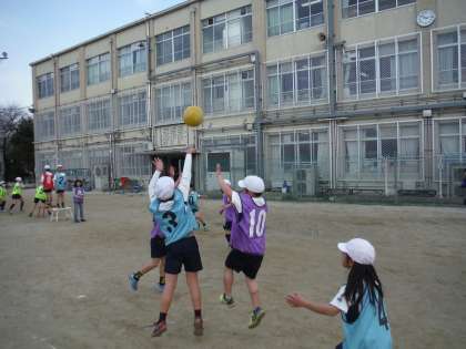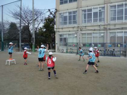 高学年の「バスケットボール」に向けて,パスをつなぐ,思った所にボールを投げるなどの動きを学んでほしいです。