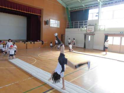 回転技以外にも,倒立にブリッジとできる技を増やしています♪