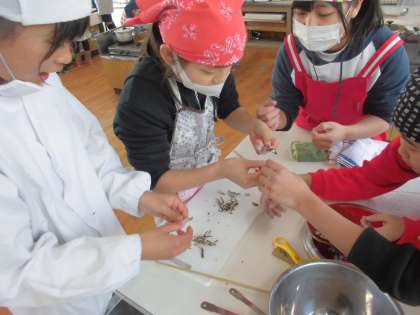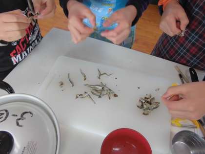 そのために,煮干しの頭とはらわたを手で取り除きます。