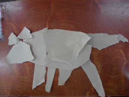 今日は,クラフト紙を手でちぎって,それらを並べたり組み合わせたりして,生き物を作りました。