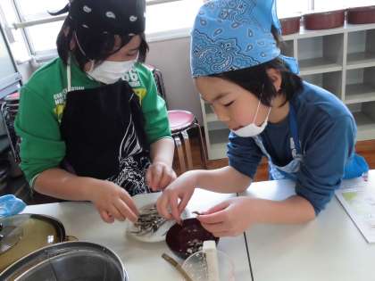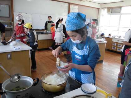 5年生は家庭科の調理実習の交流学習をしました。