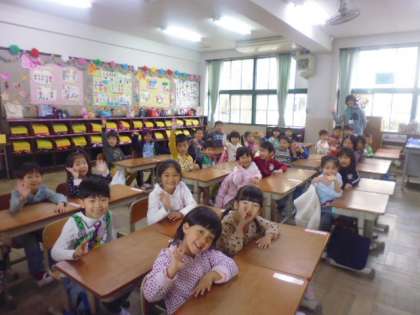 昨日、入学式を終え、初めて集団登校でやってきました。教室に入って、今日の学習の予定を確認しています。あいさつのことやトイレの使い方など一からひとつひとつ学んでいきます。さあ、友達はできたかなあ。