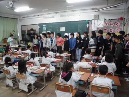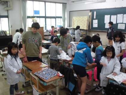 ついに来てくれました,6年生が。6年生の担任の簡単な指示のあと,さっそく1年生のそばに行って牛乳パックの片付け方を手ほどきする6年生。エプロンのたたみ方も教えてくれます。本当に頼りになります。ありがとう6年生。いつのまにかこんなに素敵なお兄さん,お姉さんになったんだね。