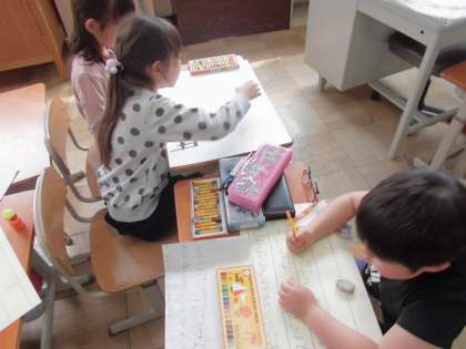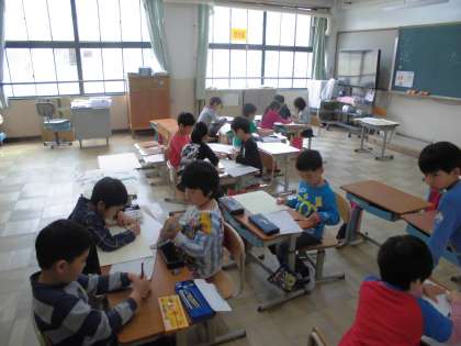 学校探検にむけて,今日は自分たちが担当する部屋の絵を描いたり,部屋を説明する文を書いたりしました。