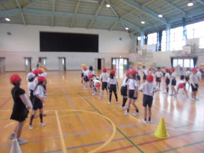 そのため今日は,体育館で体ほぐし運動をしました。