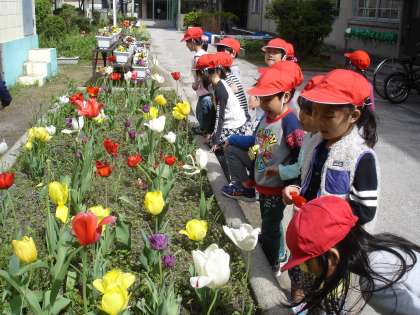 生活の時間には,「はるみつけ」に出かけます。葛野小学校の中庭には,たくさんの花が咲き,みんなたくさんの春を見つけていました!お気に入りのお花や生き物が見つかったかな?