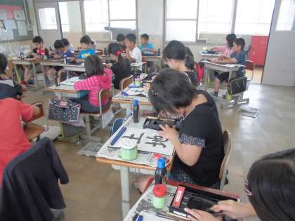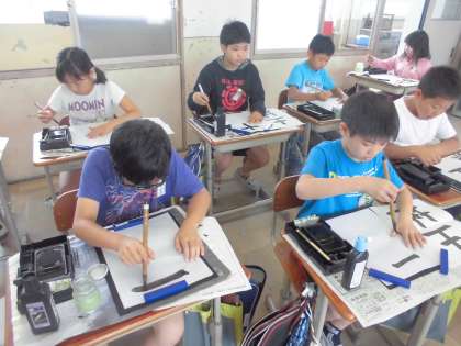 今日は書写の学習をしました。初めは墨をすって,始筆終筆に気をつけながら「土地」という字を書きます。仕上がりはどうでしょう。久しぶりの墨のにおいに心を落ち着かせる子どもたちでした。