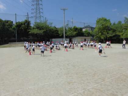 今日は体育の時間に学年で「リレーあそび」をしました。