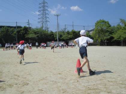隣のチームに負けまいと,子ども達は一生懸命に走っていました!