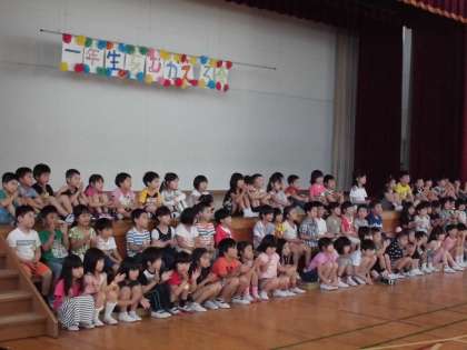 1年生が初めて全校児童の前に姿を現しました。各学年の子どもたちが,工夫を凝らした歌やダンスなどを披露してくれました。ところどころに笑いを誘う場面もありました。体育館全体があたたかい雰囲気に包まれて,素敵な会となりました。