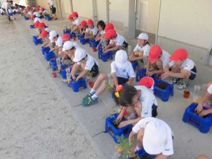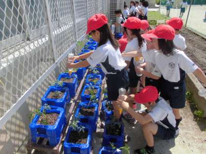 昨日は,台風の影響でできなかったミニトマトの苗を植えました。