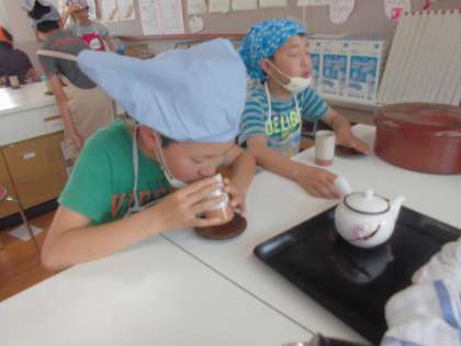 今日の実習に向けておうちで事前にお茶を入れる練習をしたり,おいしいお茶の入れ方を