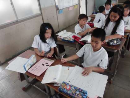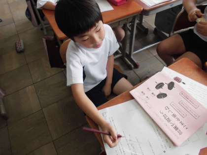 今日の国語は,「こま職人になろう」と題して,自分があったらいいなと思うこまを考えました。「空をとぶこま」や「バウンドごま」など,面白いアイディアがたくさん出てきました。次の時間で,色々と発表してもらいたいですね。
