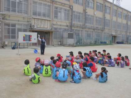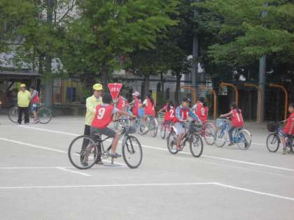 23日(土)にPTA主催の親子自転車教室が行われました。自分や相手の安全を守るために,自転車の乗り方にももちろんマナーやルールがあります。今日は,そうしたことを学ぶために,警察の方からお話を聞き,自転車に実際に乗って運動場や校区を走ってみました。自分や相手の安全を守る,とても有意義な自転車教室になりました。朝早くの準備から後片付けまでご協力していただいた,葛野交通安全推進会,葛野おやじの会,PTA,そして右京警察署の皆さま,本当にありがとうござしました。
