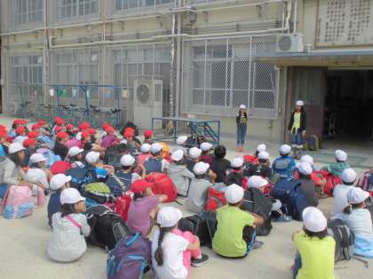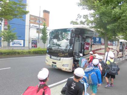 8時10分,無事みんなそろってみさきの家へ出発しました。バスに乗り込んだ子どもたちからはあふれんばかりの笑顔が!みんなとても楽しみにしていたのですね。出発式では,子どもから素敵な「はじめの言葉」も聞けました。司会者もハキハキ話せていて立派!みんなで素晴らしい思い出をつくってきて下さいね。