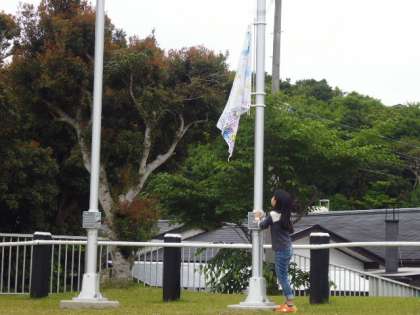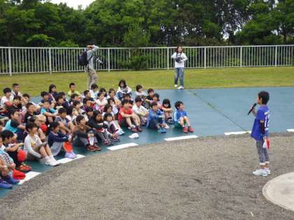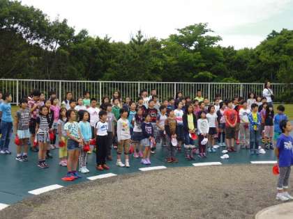 みさきの家に到着して入所式です。校歌斉唱、所員さんからは三つの約束についてお話してくださいました。