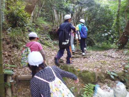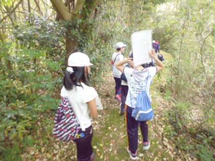 今日の午前中の活動は、浦山ラリーです。写真を見比べながら、進む道を探っていきます。班で協力して活動しないとばらばらになっちゃう。それぞれの意見を出し合って。