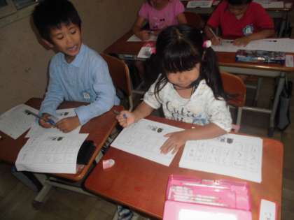 習ったひらがなを,お手本を見ながらゆっくり書いていきました。