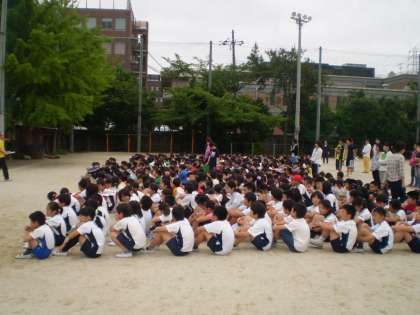 地震による火災を想定した避難訓練を行いました。全校児童が運動場に避難するまでにかかった時間は3分53秒でした。どの子も真剣に訓練を行えていたのがよかったと思います。