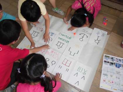 また,地図記号についても学習を始めました。みんなが覚えられるように分かりやすくカードにかき模造紙に貼りました。