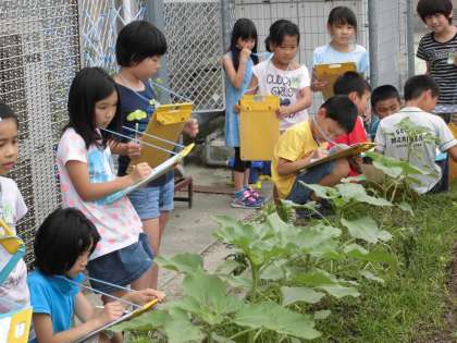手のひらと葉の大きさを比べたり,茎の太さを測ったり,手触りを確かめたり,「観察の仕方」も上手になってきています。