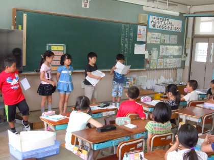 この学習では,みんなに知らせたいことを,話の組み立てに気を付けて話し,聞き手は,その話の中心に気を付けて聞き,質問をしたり感想を言ったりする活動を行いました。今回はその学習の最後ということで,グループや学級全体で,交流会を開き,質問や感想を伝え合いました。学習後の感想を読んでいると,「みんなのことをよく知れてよかった」「もっとたくさんの話を聞きたかった」など,意欲的な言葉がたくさんみられました。子どもたちが対話をする中で,互いの理解を深めていく。そんな学習活動を,今後もたくさん取り入れていきたいと思います。