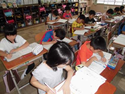 シーンと集中して問題に取り組んでいます。