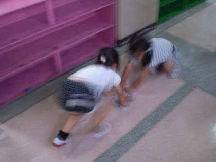 掃除時間になると,6年生と協力をして掃除を頑張る1年生の姿が見られます。今日も廊下や教室のそうきんがけを頑張っている子どもがいました。
