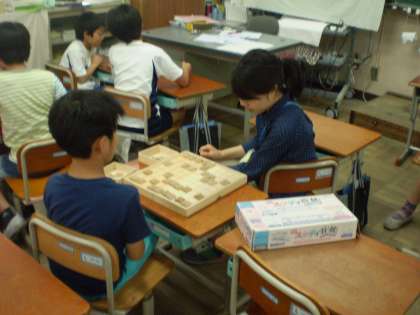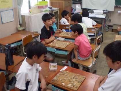 写真は囲碁・将棋クラブの様子です。運動系のクラブに比べると静かですが,その分緊張感が漂います。私も子どもと一戦交え,うっかりミスから飛車を失いヒヤッとしましたが,なんとか勝ちきることができました。「王手!!」の発声にも力が入りました!