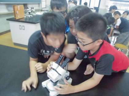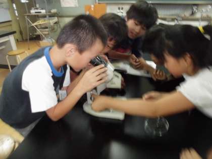 理科の時間では,メダカの卵の観察をしています。今日は双眼顕微鏡をつかって観察してみました。ピントを合わせるのはなかなか難しいですが,見えた時には歓声があがりました。