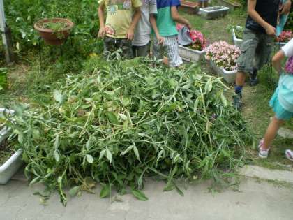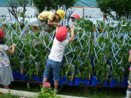 この時期は雨がよく降り気温も高くなってきたので,ちょっと油断するとすごい勢いで伸びた雑草があちらこちらに。管理用務員さんにも相当頑張ってもらっていますが,一人の力だけではとてもとても・・・。というわけで今日は1年生が雑草抜きを手伝ってくれました。小さな力も一つに合わされば大きな力に!いやあ,本当に助かりました。ありがとう,1年生。アサガオも順調に大きくなっています。!