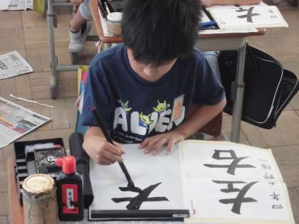 バランスを取ることが非常に難しかったようですが,必死に書いていました。