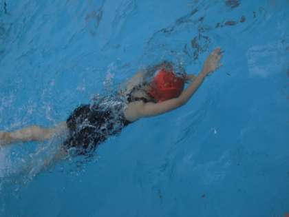 子ども達は必死に25mを泳ぎ切ろうと練習を重ねています。
