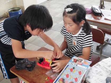 説明書を見ながらモノを造ることに慣れている子は見る見るうちに完成していました。