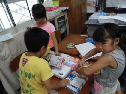 いろいろな箱を使って,船や飛行機,ロケットなど,たくさんのものを作りました。