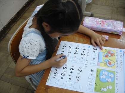 「2−1=1」と教室に子どもたちの声が響きます。目標は2分以内!毎日続けているうちに,少しずつスラスラ言える子も出てきました。